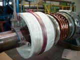 Ve spolupráci s pracovníky katedry aplikovaných věd Západočeské university doc. Lašem a Ing. Lašovou jsme provedli napjatostní analýzu nemagnetických obručí metodou konečných prvků. Řešením tohoto úkolu je mechanická úprava svěrové plochy obruče, jejíž tvar je vyjádřen výsledným empirickým vzorcem a lze ho za pomoci použitého programu aplikovat na různé typy rotorů. Toto řešení odstraňuje koncentraci napětí na hranách svěrové plochy a rovnoměrně je rozkládá do celé plochy svěru. Tím omezuje možnost vzniku a šíření trhlin a přispívá ke zvýšení spolehlivosti a životnosti rotorů.